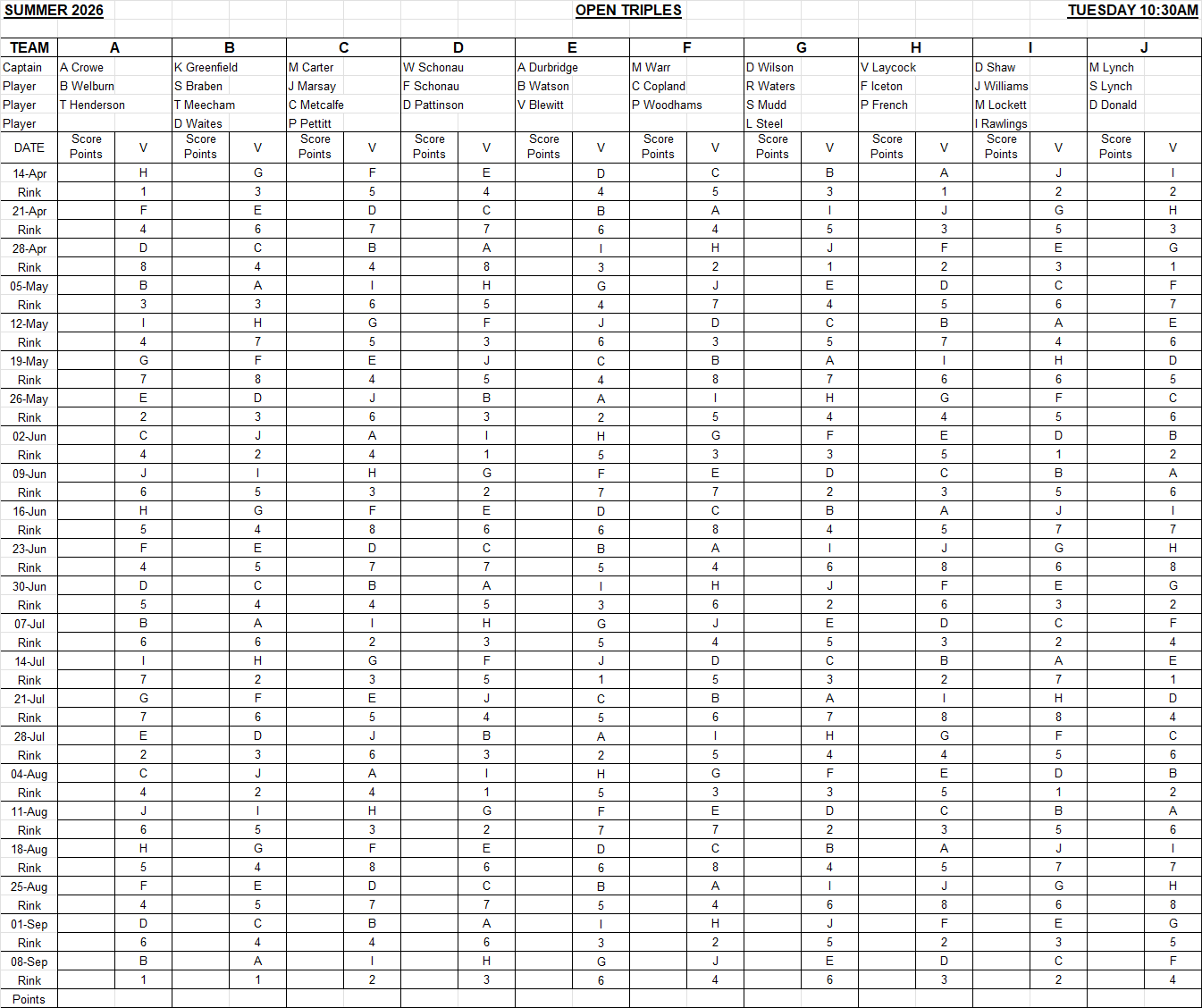 10:30 Open Pairs