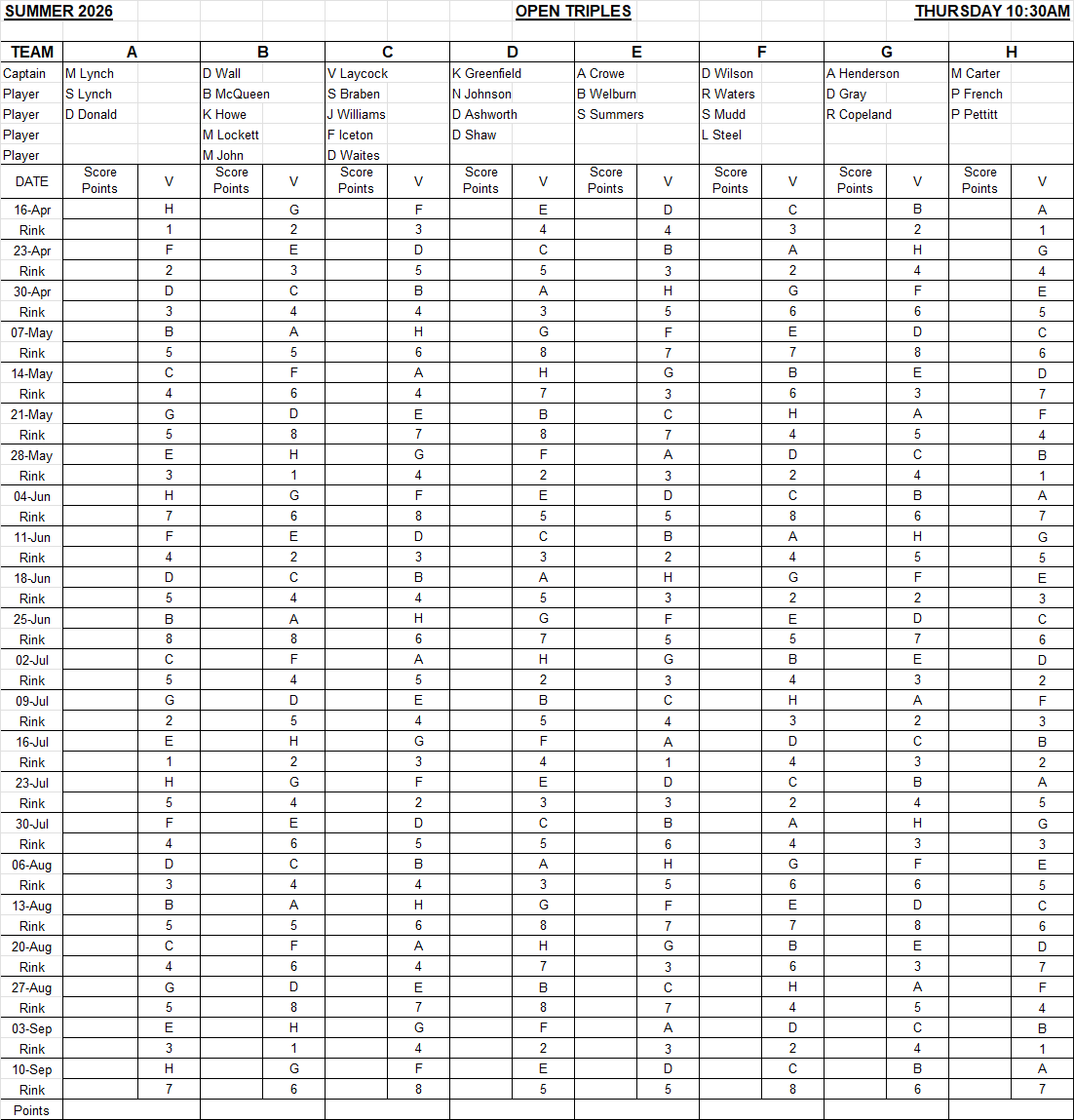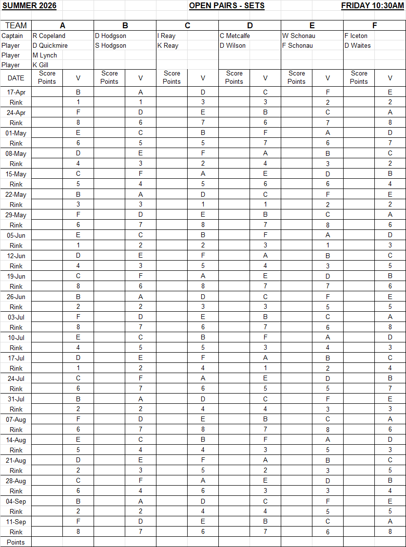All are open to everyone. Please contact the club for further details.