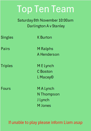 Message from Tosh – Last man standing will start weekend commencing Friday 15th August to Monday 18th August please pass teams and money to myself, Martin, Michael or Sam just a reminder £5 entry and premiership team
